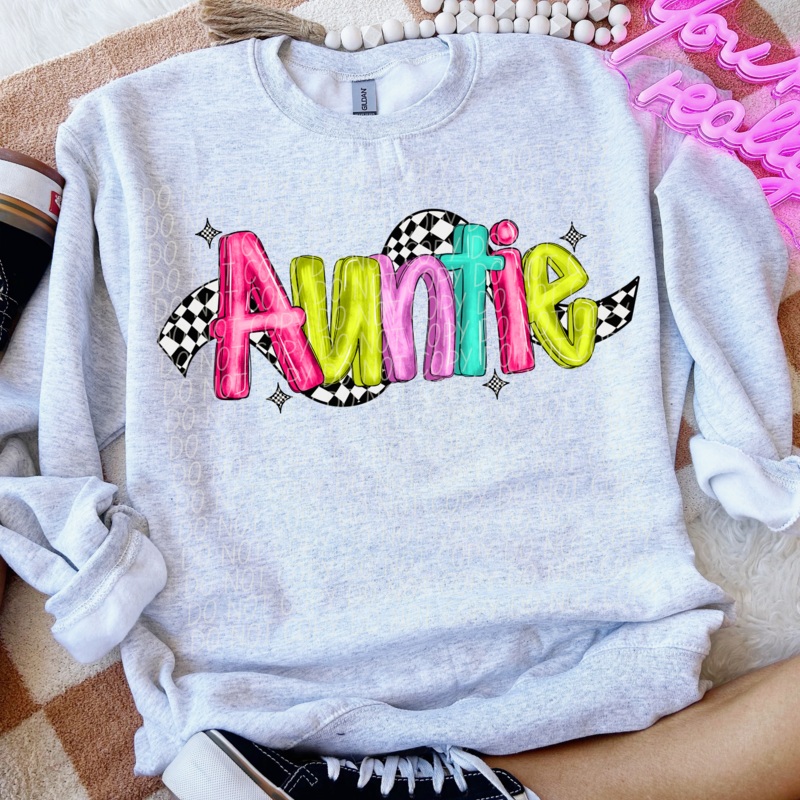 AUNTIE BRIGHT CHECKERED NAME|Pocket|Infant|Toddler|Youth|Adult 11″|Adult 12″