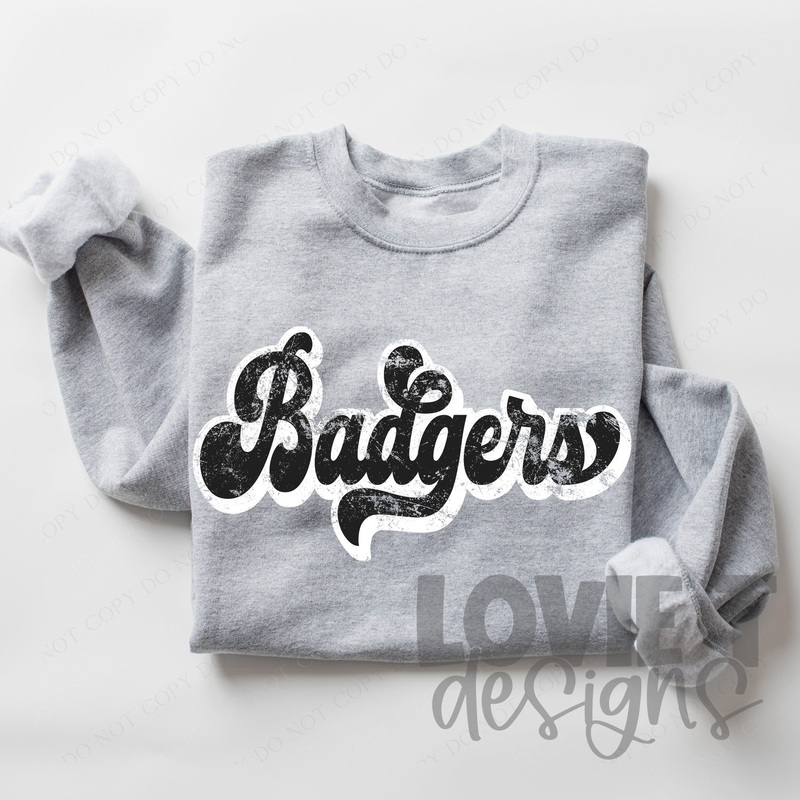 Badgers Retro Font|Pocket 3.5″-4″|Infant|Toddler|Youth 8.5|Adult 11″|Adult 12″