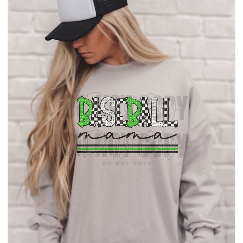 BASEBALL MAMA-GREEN WHITE CHECKERS