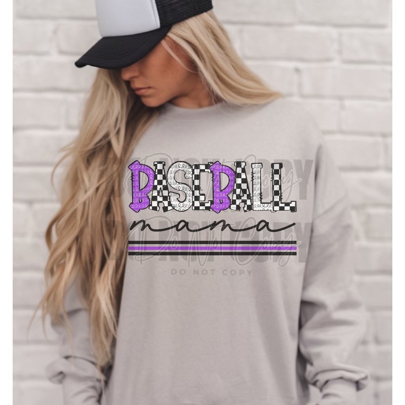 BASEBALL MAMA – PURPLE WHITE CHECKERS