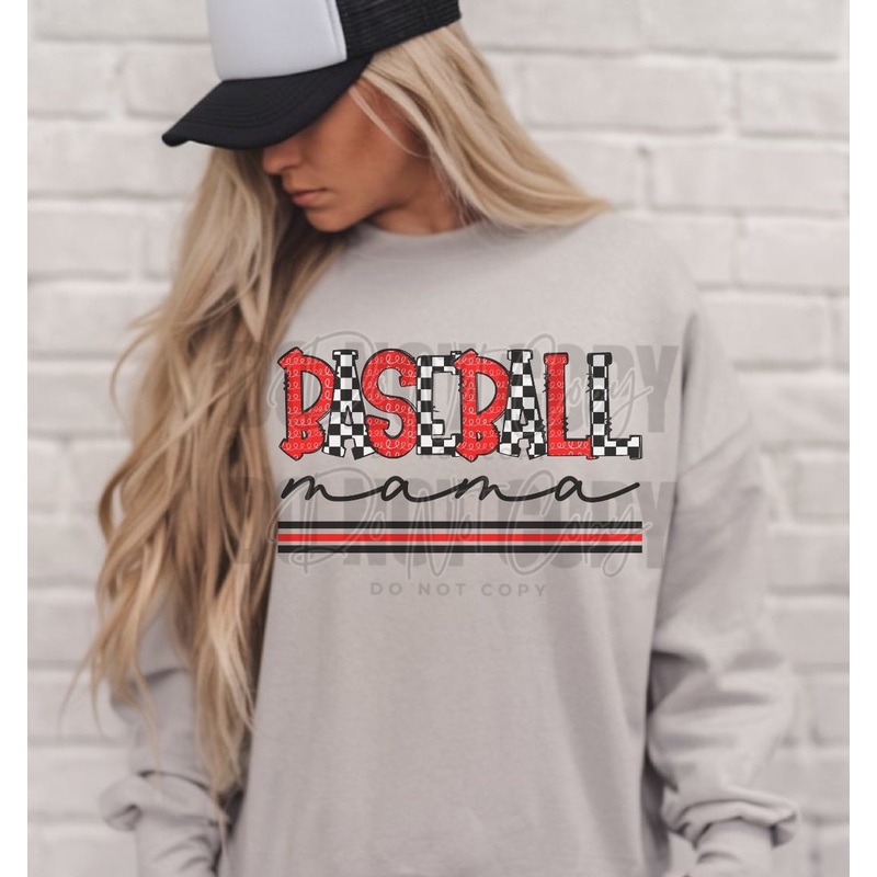 BASEBALL MAMA -RED CHECKERS|Pocket|Infant|Toddler|Youth|Adult 11″|Adult 12″