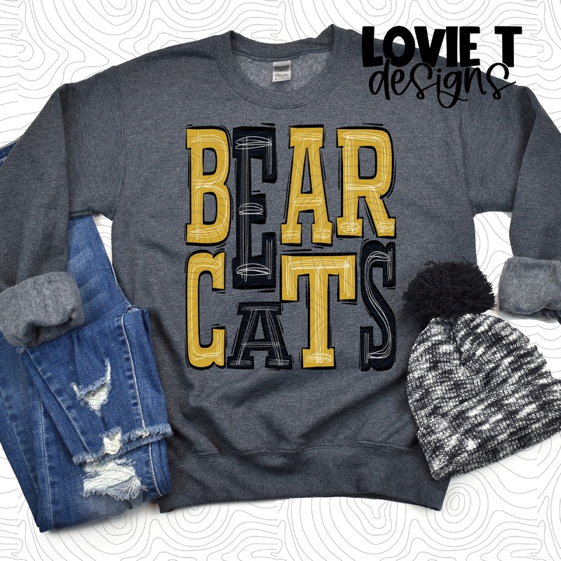 Bearcats Black And Gold|Pocket|Infant|Toddler|Youth|Adult 11″|Adult 12″|Oversized Print 12″ Wide and Approximately 14″ Long – Also Includes Two Smaller Prints 5″ 6″ inches wide & 7″ Tall|Mockup