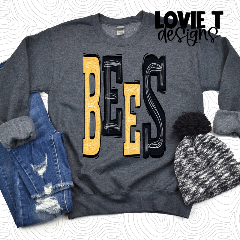 Bees-Yellow -Black|Pocket|Infant|Toddler|Youth|Adult 11″|Adult 12″|Oversized Print 12″ Wide and Approximately 14″ Long – Also Includes Two Smaller Prints 5″ 6″ inches wide & 7″ Tall|Mockup