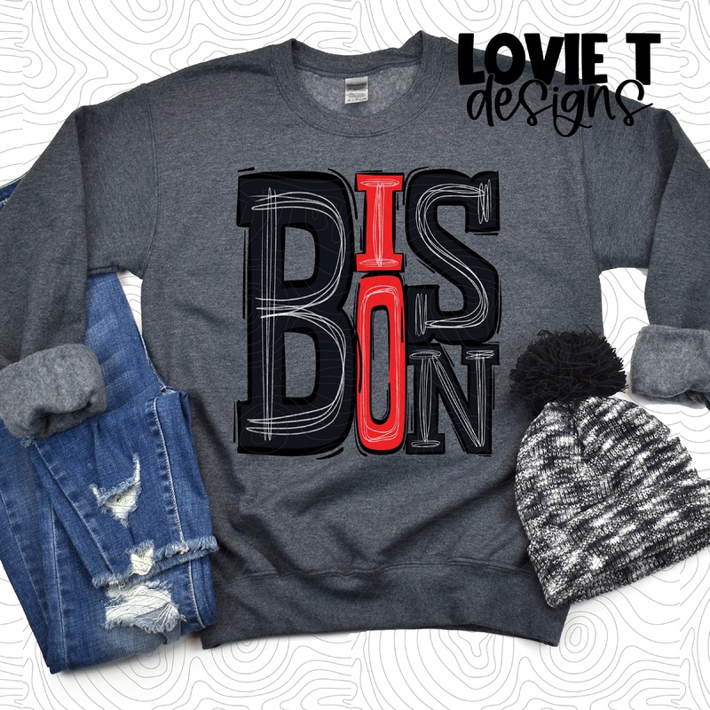 Bison Black And Red|Pocket|Infant|Toddler|Youth|Adult 11″|Adult 12″|Oversized Print 12″ Wide and Approximately 14″ Long – Also Includes Two Smaller Prints 5″ 6″ inches wide & 7″ Tall|Mockup