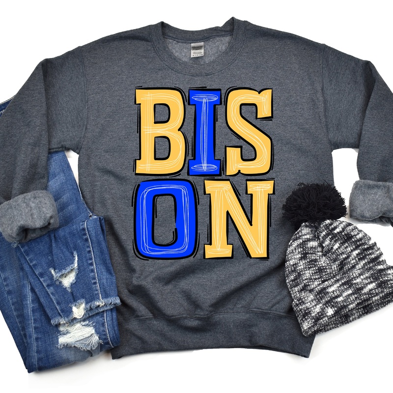 Bison-Yellow-Royal Blue|Pocket|Infant|Toddler|Youth|Adult 11″|Adult 12″|Oversized Print 12″ Wide and Approximately 14″ Long – Also Includes Two Smaller Prints 5″ 6″ inches wide & 7″ Tall|Mockup