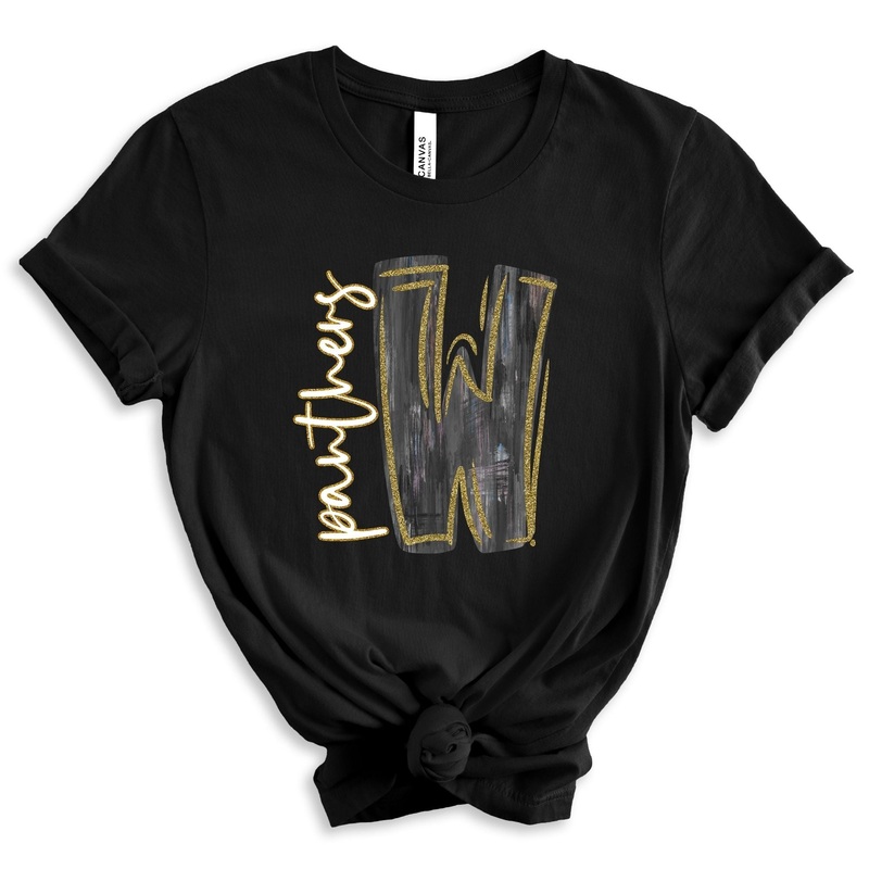 Black And Gold W Panthers|Pocket 3.5″-4″|Infant|Toddler|Youth 8.5|Adult 11″|Adult 12″