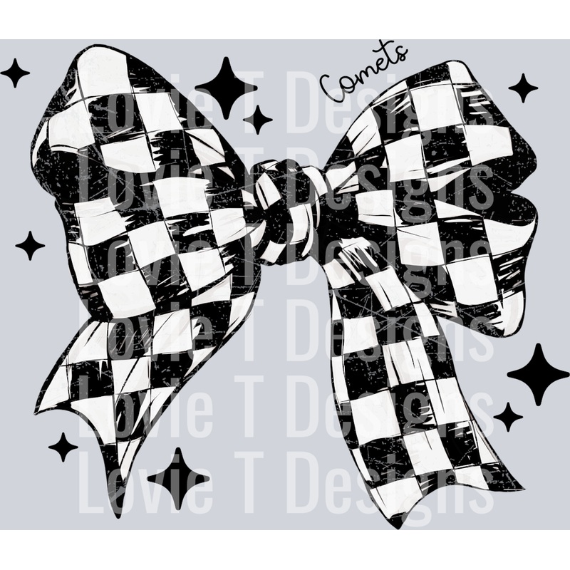 BLACK AND WHITE CHECKER BOW WITH STARS COMETS