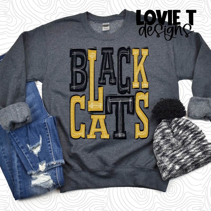 Blackcats Black And Gold|Pocket|Infant|Toddler|Youth|Adult 11″|Adult 12″|Oversized Print 12″ Wide and Approximately 14″ Long – Also Includes Two Smaller Prints 5″ 6″ inches wide & 7″ Tall|Mockup