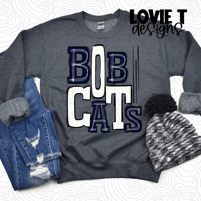 Bobcats Navy And White|Pocket|Infant|Toddler|Youth|Adult 11″|Adult 12″|Oversized Print 12″ Wide and Approximately 14″ Long – Also Includes Two Smaller Prints 5″ 6″ inches wide & 7″ Tall|Mockup