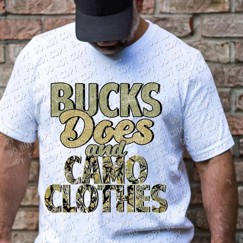 Buck Does And Camo Clothes|Front Pocket Shown in Mockup 3.5″-4″|Infant|Toddler|Youth 8.5|Adult 11″|Adult 12″