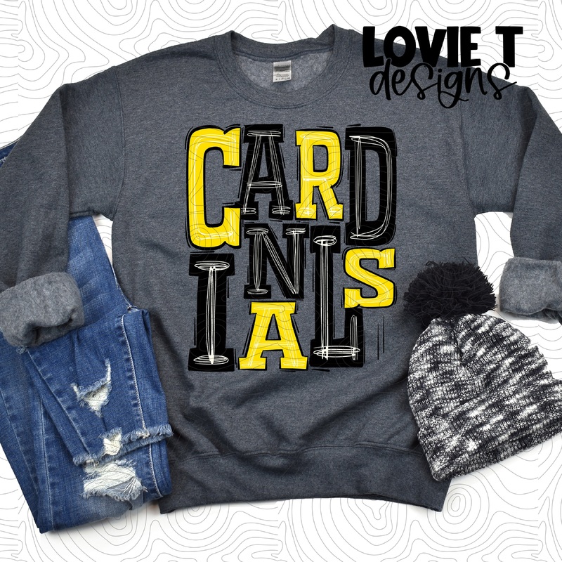 Cardinals Yellow And Black|Pocket|Infant|Toddler|Youth|Adult 11″|Adult 12″|Oversized Print 12″ Wide and Approximately 14″ Long – Also Includes Two Smaller Prints 5″ 6″ inches wide & 7″ Tall|Mockup