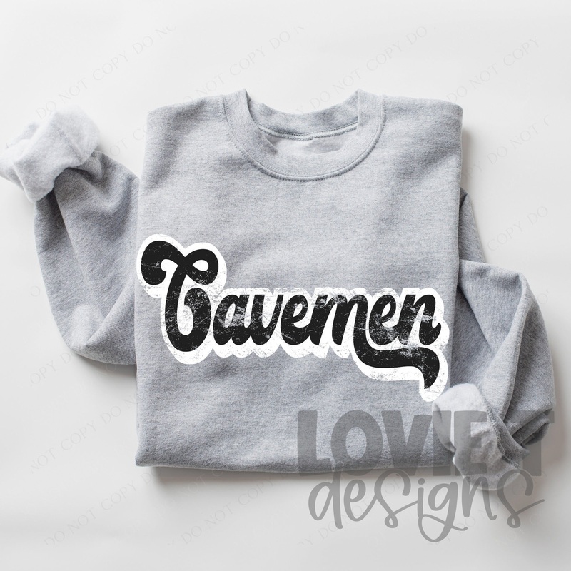 Cavemen Retro Font|Pocket 3.5″-4″|Infant|Toddler|Youth 8.5|Adult 11″|Adult 12″