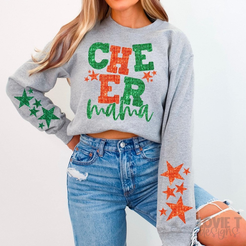 CHEER MAMA ORANGE AND GREEN FAUX SPARKLES