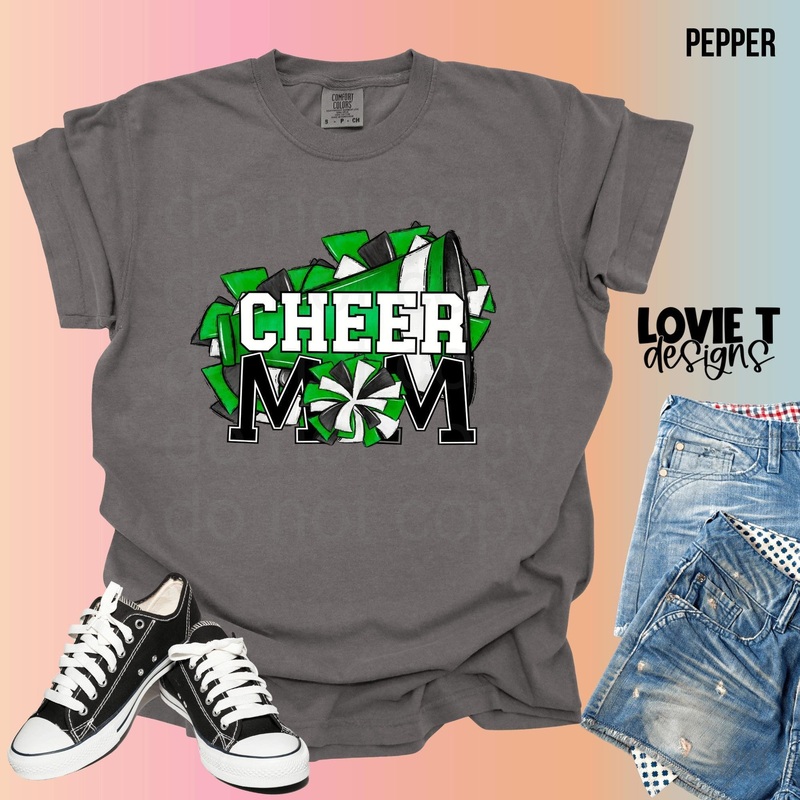 Cheer Mom Green|Pocket 3.5″-4″|Infant|Toddler|Youth 8.5|Adult 11″|Adult 12″