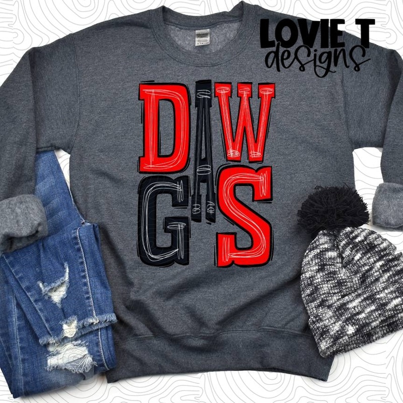 Dawgs-Red-Black|Pocket|Infant|Toddler|Youth|Adult 11″|Adult 12″|Oversized Print 12″ Wide and Approximately 14″ Long – Also Includes Two Smaller Prints 5″ 6″ inches wide & 7″ Tall|Mockup