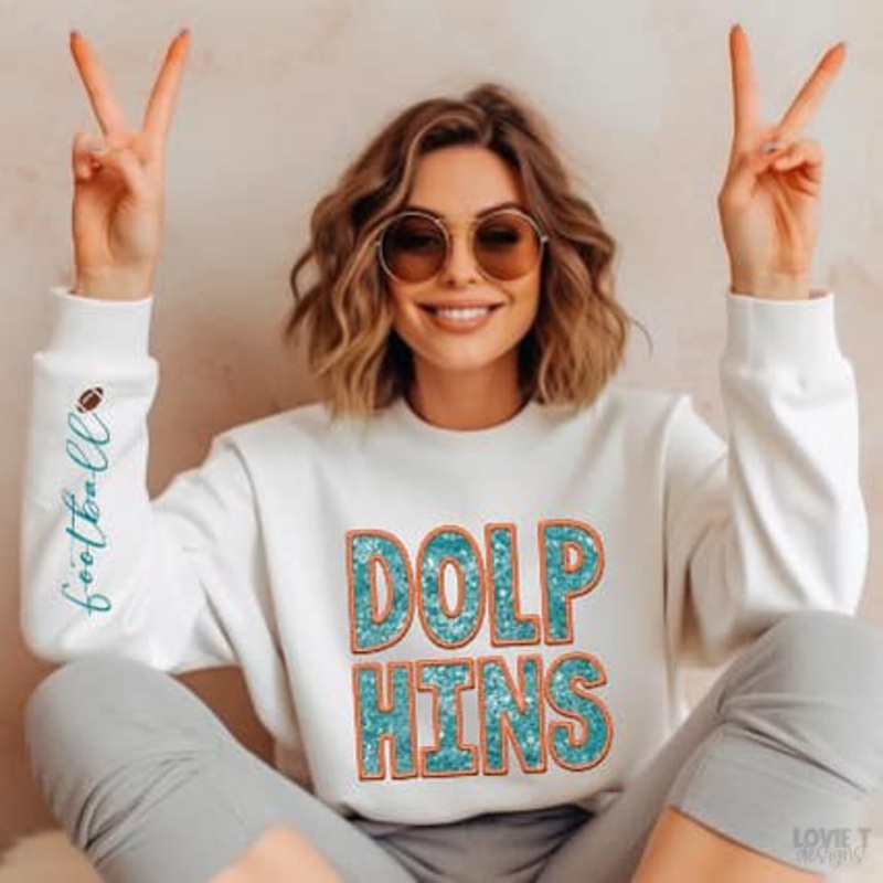 Dolphins + Football Sleeve|Infant|Toddler|Youth 8.5|Adult 11″|Adult 12″