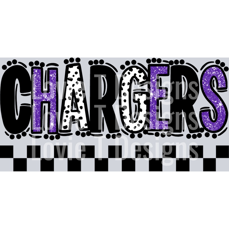 DOODLE DOT MASCOT CHARGERS BLACK AND PURPLE