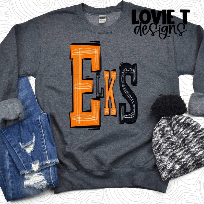 Elks-Orange-Black|Pocket|Infant|Toddler|Youth|Adult 11″|Adult 12″|Oversized Print 12″ Wide and Approximately 14″ Long – Also Includes Two Smaller Prints 5″ 6″ inches wide & 7″ Tall|Mockup