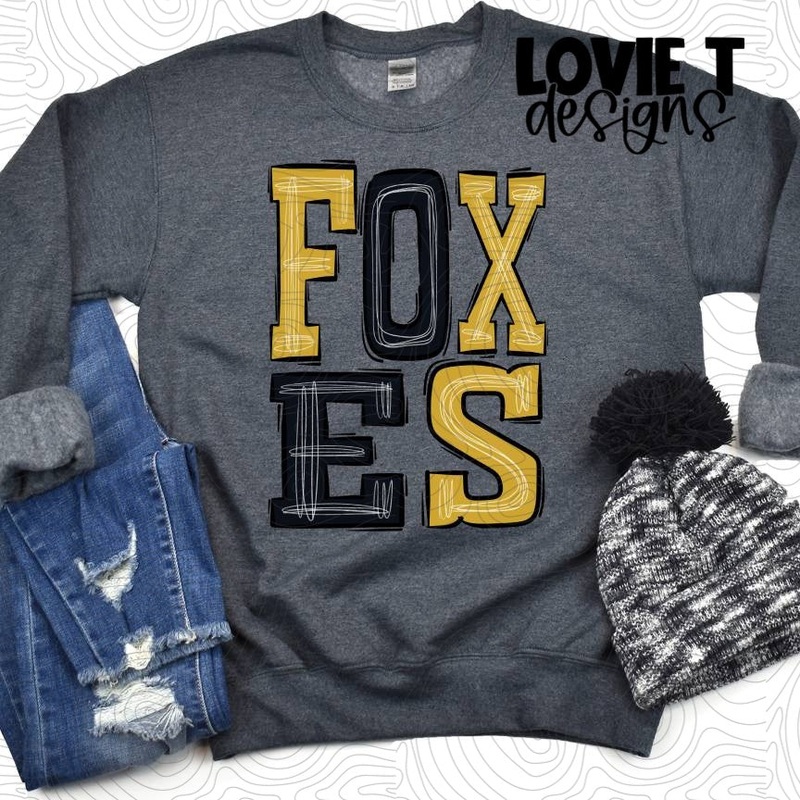 Foxes-Gold-Black|Pocket|Infant|Toddler|Youth|Adult 11″|Adult 12″|Oversized Print 12″ Wide and Approximately 14″ Long – Also Includes Two Smaller Prints 5″ 6″ inches wide & 7″ Tall|Mockup