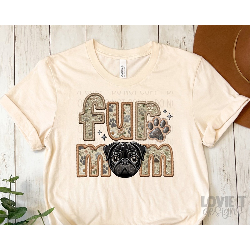 FUR MOM PUG – BLACK|Pocket 3.5″-4″|Infant|Toddler|Youth 8.5|Adult 11″|Adult 12″