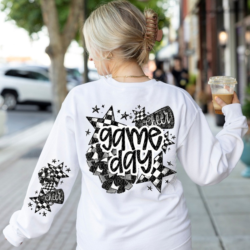 GAME DAY WHITE OUTLINE CHEER|Youth|Adult