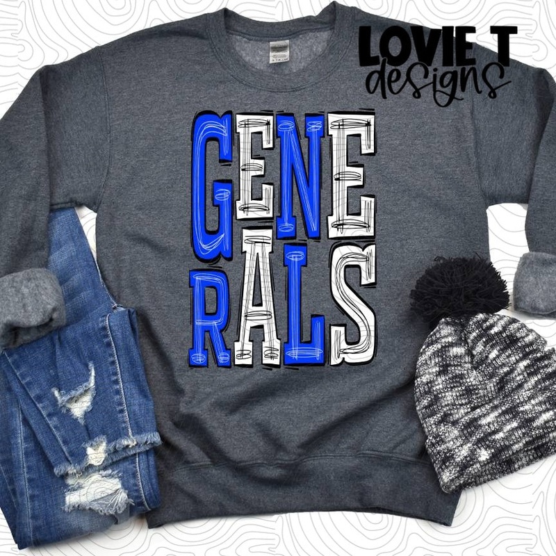 Generals-Royal Blue-White|Pocket|Infant|Toddler|Youth|Adult 11″|Adult 12″|Oversized Print 12″ Wide and Approximately 14″ Long – Also Includes Two Smaller Prints 5″ 6″ inches wide & 7″ Tall|Mockup