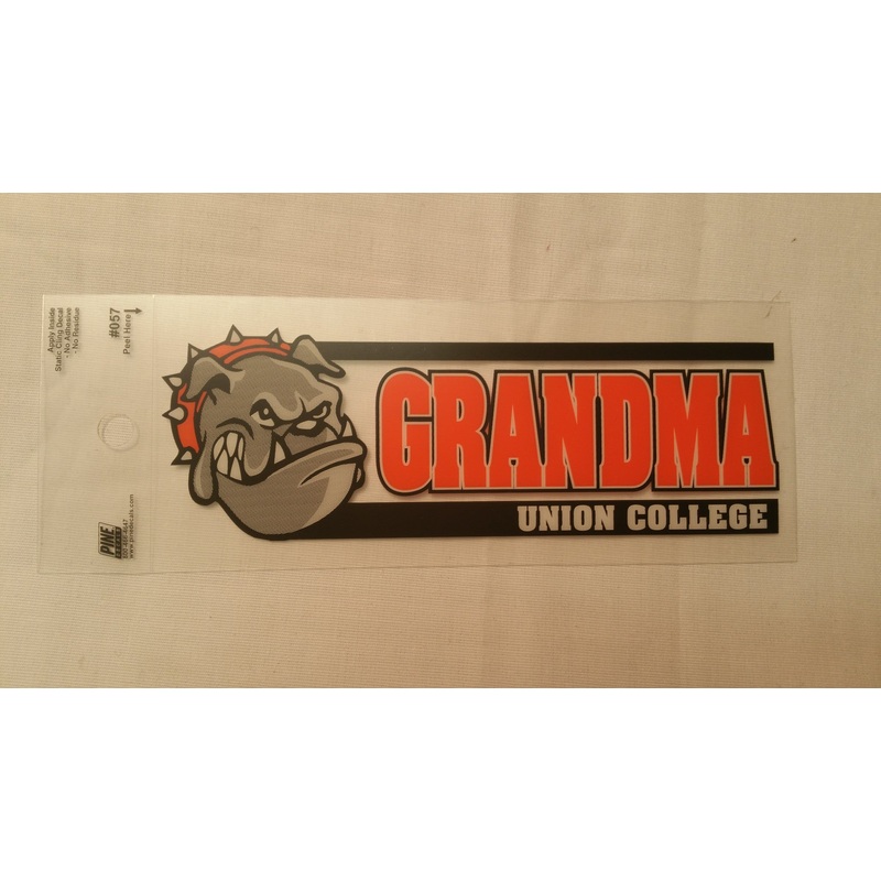 Brand: Pine Decal Wording: Grandma Union College Logo: Bulldog Head Material: Clear Static Cling