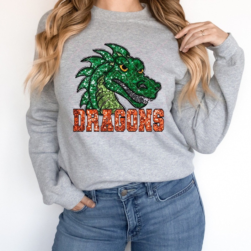 Green Dragons Orange Sequin|Pocket 3.5″-4″|Infant|Toddler|Youth 8.5|Adult 11″|Adult 12″