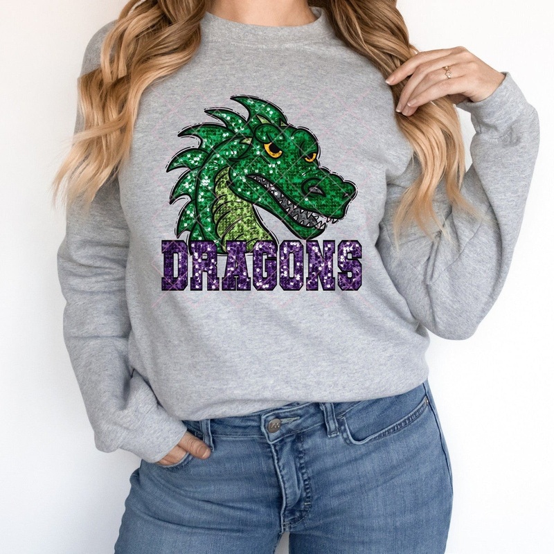 Green Dragons Purple Sequin|Pocket 3.5″-4″|Infant|Toddler|Youth 8.5|Adult 11″|Adult 12″