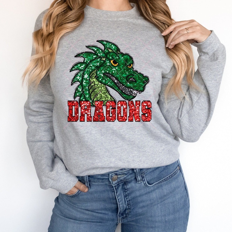 Green Dragons Red Sequin|Pocket 3.5″-4″|Infant|Toddler|Youth 8.5|Adult 11″|Adult 12″