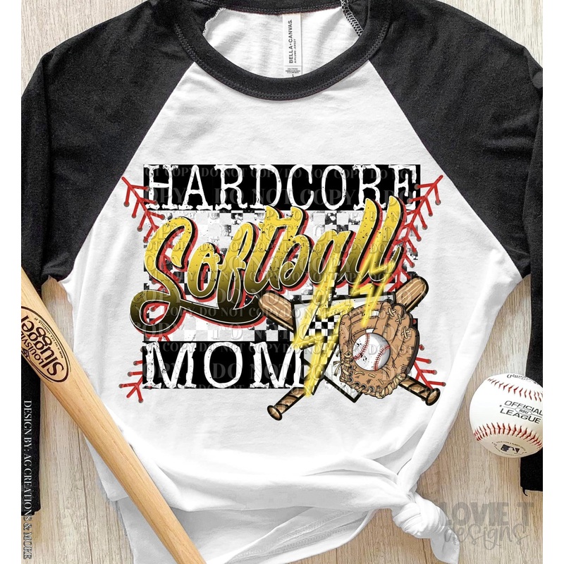 HARDCORE SOFTBALL MOM|Pocket 3.5″-4″|Infant|Toddler|Youth 8.5|Adult 11″|Adult 12″