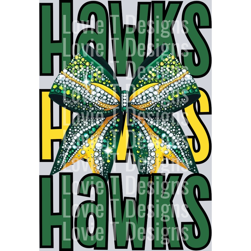 HAWKS GREEN AND YELLOW CHEER WITH BOW