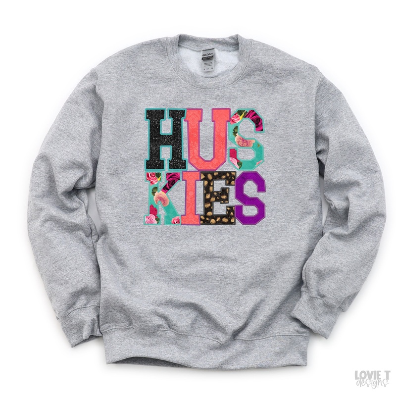 Huskies Faux Applique|Pocket 3.5″-4″|Infant|Toddler|Youth 8.5|Adult 11″|Adult 12″