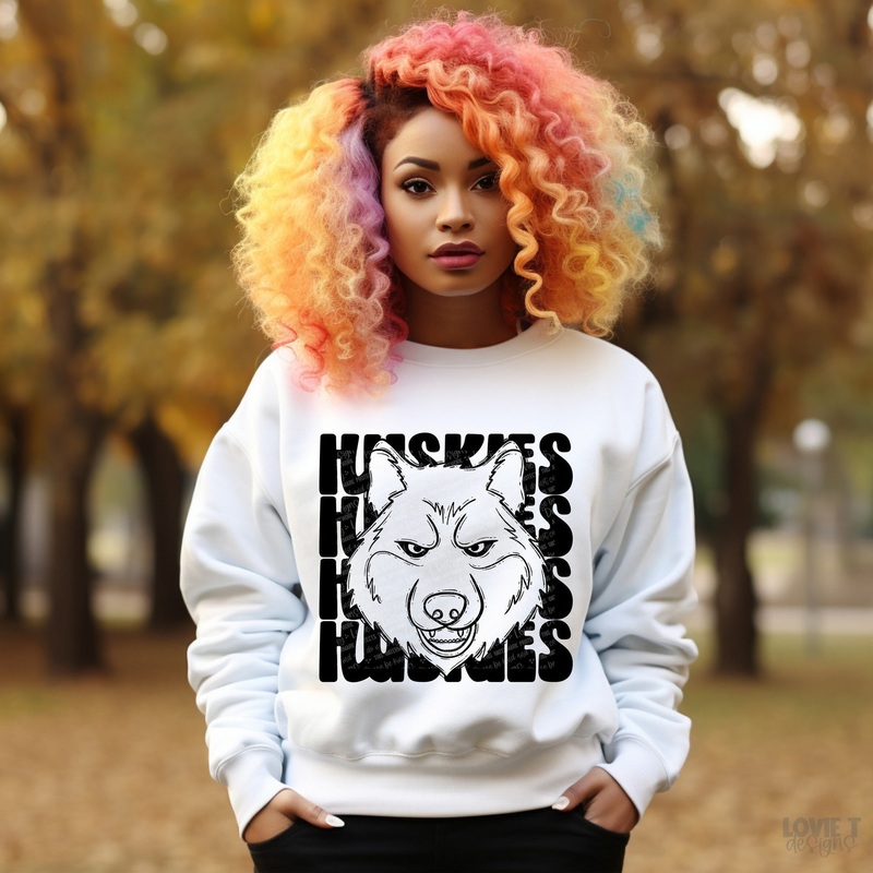 Huskies Stacked|Pocket 3.5″-4″|Infant|Toddler|Youth 8.5|Adult 11″|Adult 12″
