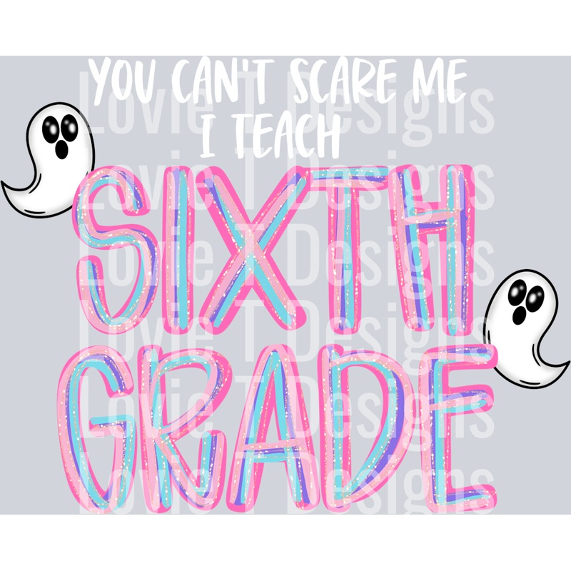 I TEACH SIXTH GRADE WHITE|Pocket 4″|Infant 6″|Toddler 7″|Youth 8.5″|Adult 11″|Adult 12″