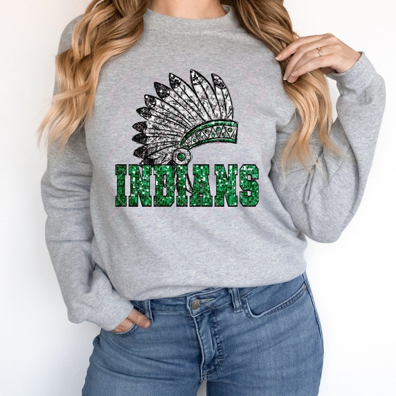 Indians Green Sequin|Pocket 3.5″-4″|Infant|Toddler|Youth 8.5|Adult 11″|Adult 12″