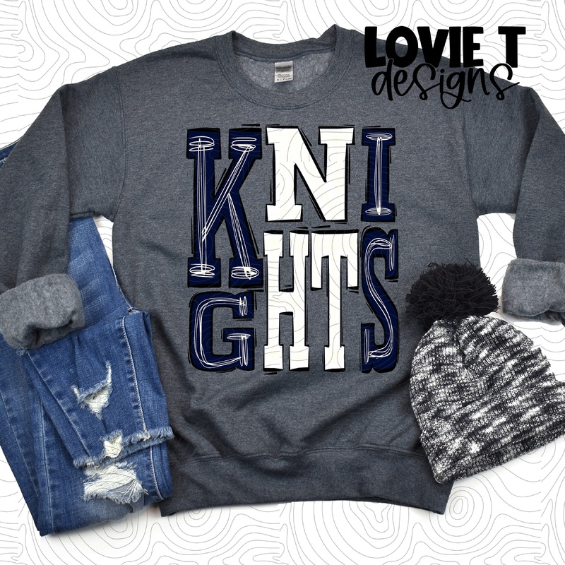 Knights Navy Blue And White|Pocket|Infant|Toddler|Youth|Adult 11″|Adult 12″|Oversized Print 12″ Wide and Approximately 14″ Long – Also Includes Two Smaller Prints 5″ 6″ inches wide & 7″ Tall|Mockup