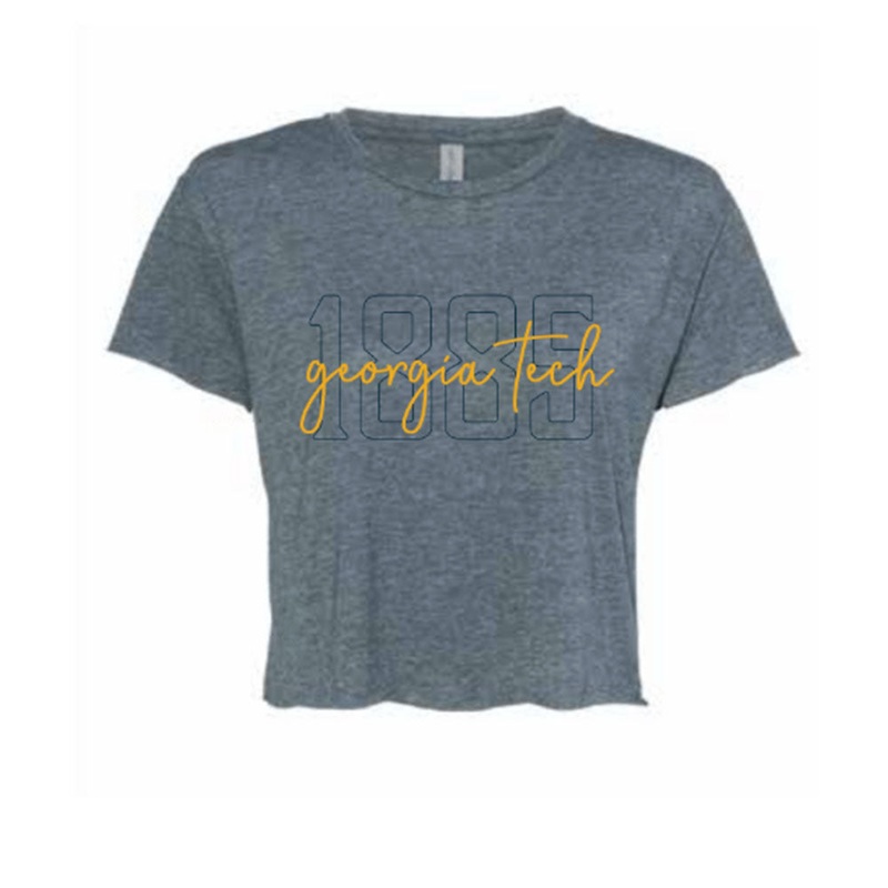 Ladies Georgia Tech Yellow Jackets Jade Crop Crew Smokey Blue T-Shirt