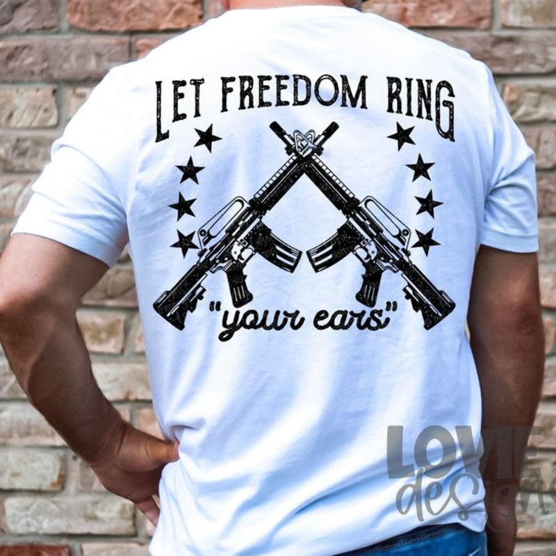 Let Freedom Ring Your Ears|Front Pocket Shown in Mockup 3.5″-4″|Infant|Toddler|Youth 8.5|Adult 11″|Adult 12″