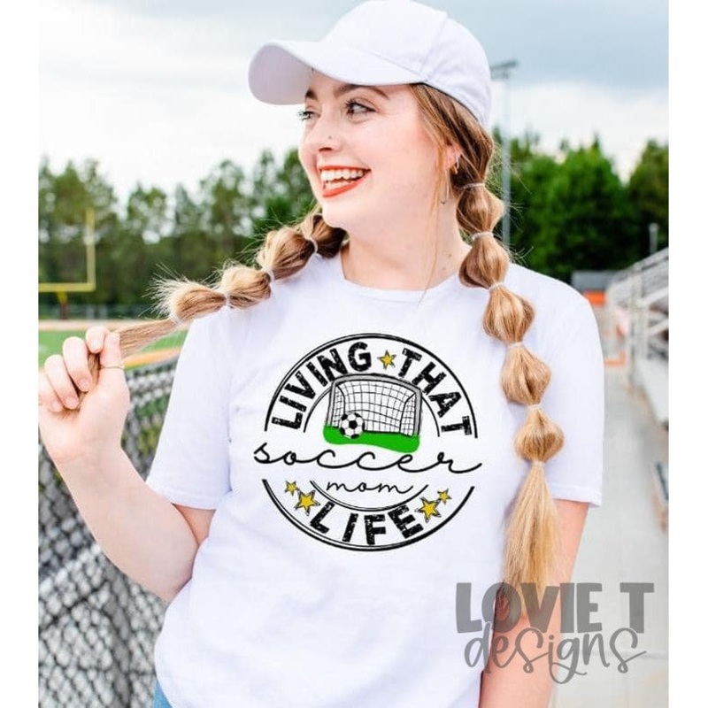 Living That Soccer Mom Life|White|Black|Pocket|Infant|Youth 8.5|Adult 11″|Adult 12″|Toddler