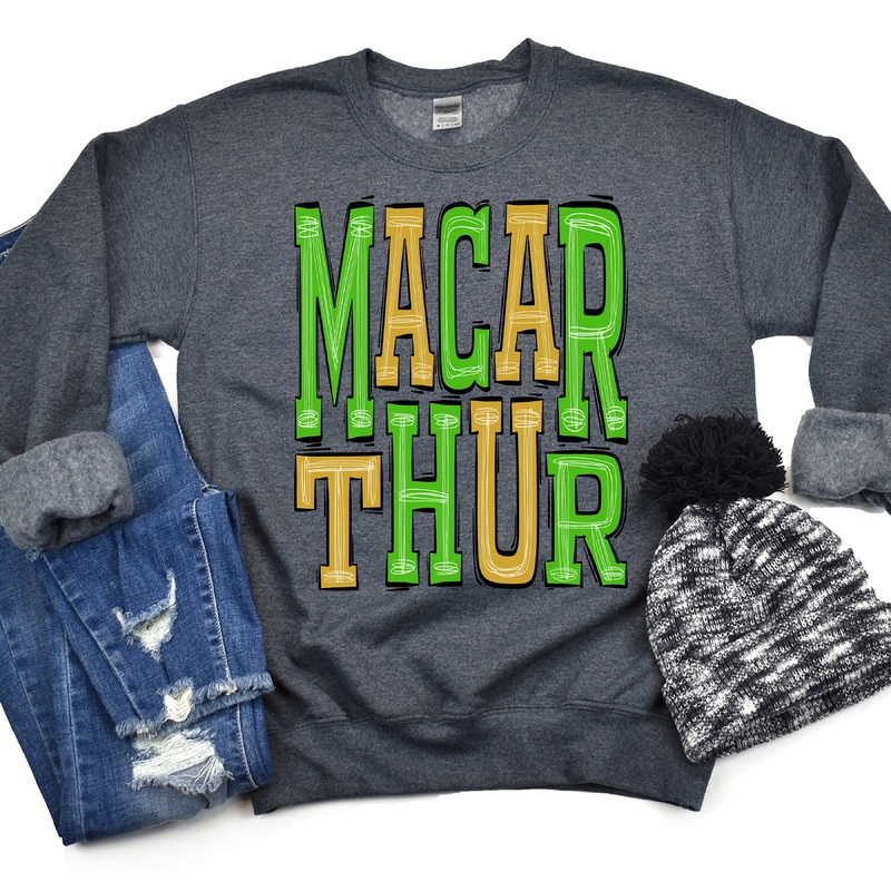 Macarthur-Green-Gold|Pocket|Infant|Toddler|Youth|Adult 11″|Adult 12″|Oversized Print 12″ Wide and Approximately 14″ Long – Also Includes Two Smaller Prints 5″ 6″ inches wide & 7″ Tall|Mockup