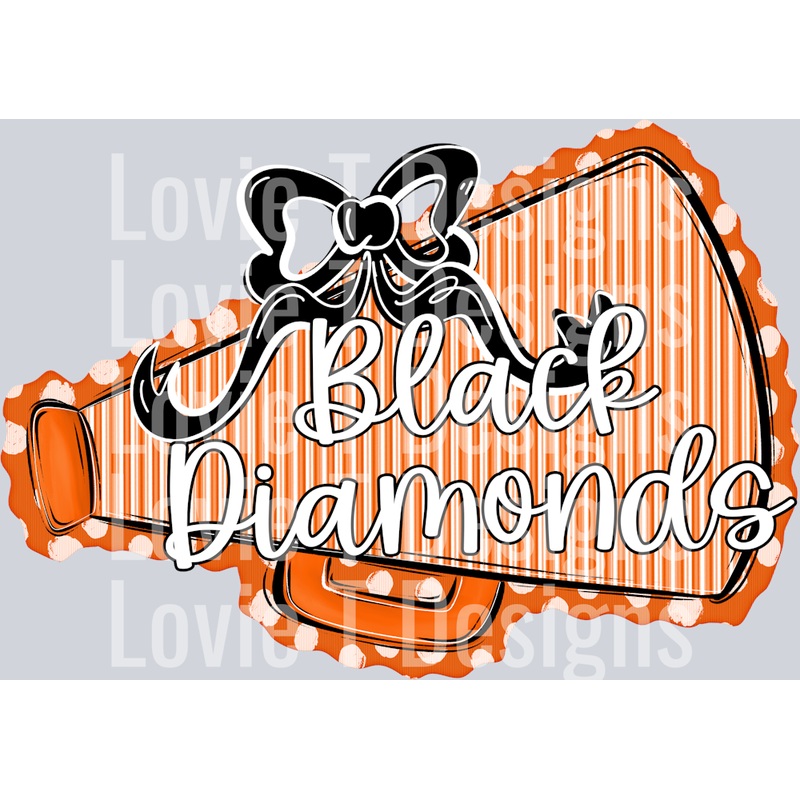 MEGAPHONES AND BOWS ORANGE AND BLACK BOW BLACK DIAMONDS
