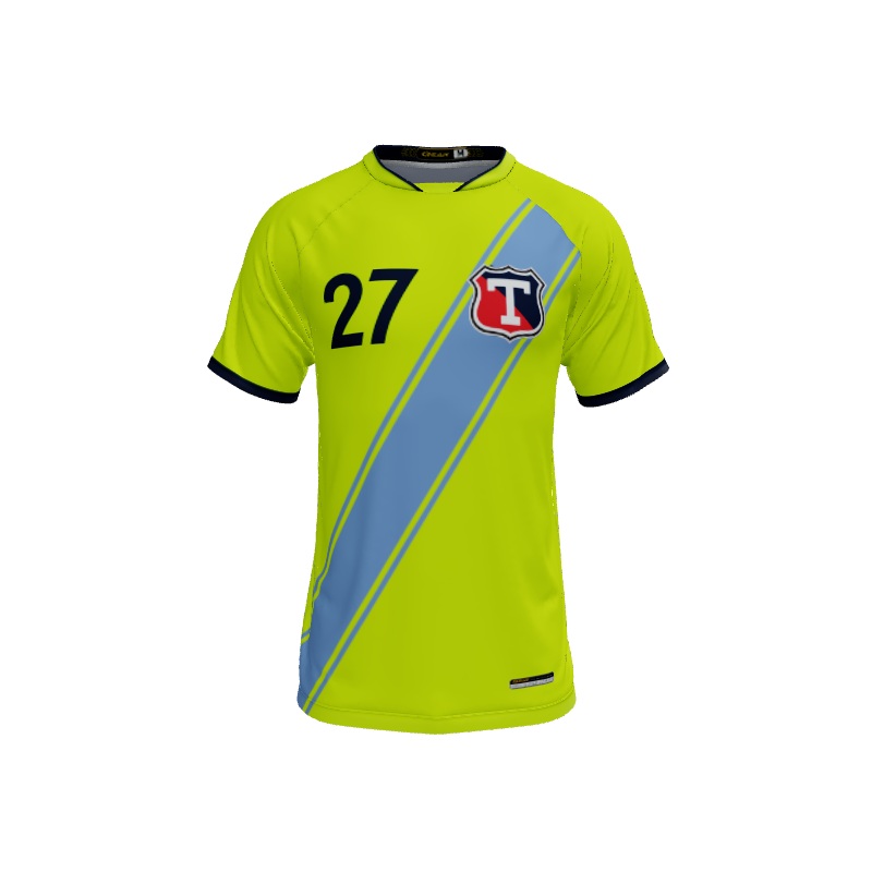 Please ensure that the numbers are properly placed and the badge is centered nicely in the contrasting color sash. All match shirt designs should have the same layout.