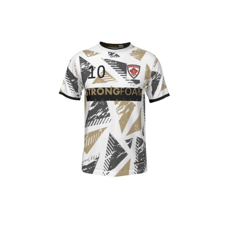 Please align front number and team logo, both should be same size. Red Portuguese logo should not have the white background square and if Strongfoam logo can be in black lettering with no background black that would be preferred. Otherwise keep as is. |