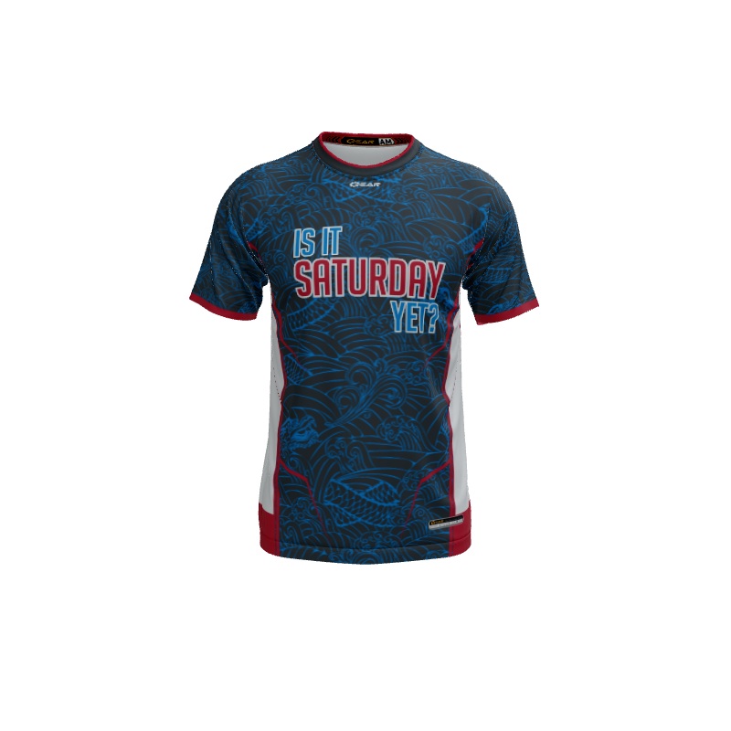 The I in the IS with the S in the Saturday are to be flush. Along with the Y and the ? being flush on the end. For back name and numbers any standard size and placement for most jerseys would be great. |