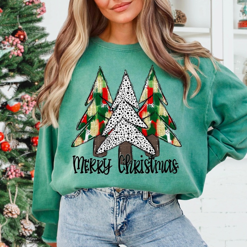 MERRY CHRISTMAS RED TREE TRIO|Pocket 3.5″-4″|Infant|Toddler|Youth 8.5|Adult 11″|Adult 12″