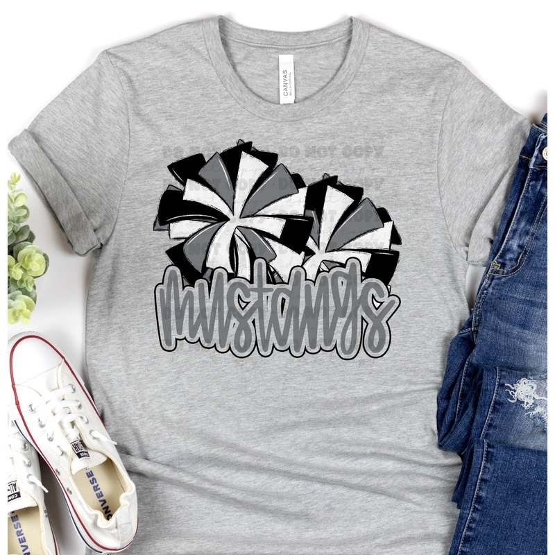 MUSTANGS GRAY POMS|Pocket 3.5″-4″|Infant|Toddler|Youth 8.5|Adult 11″|Adult 12″