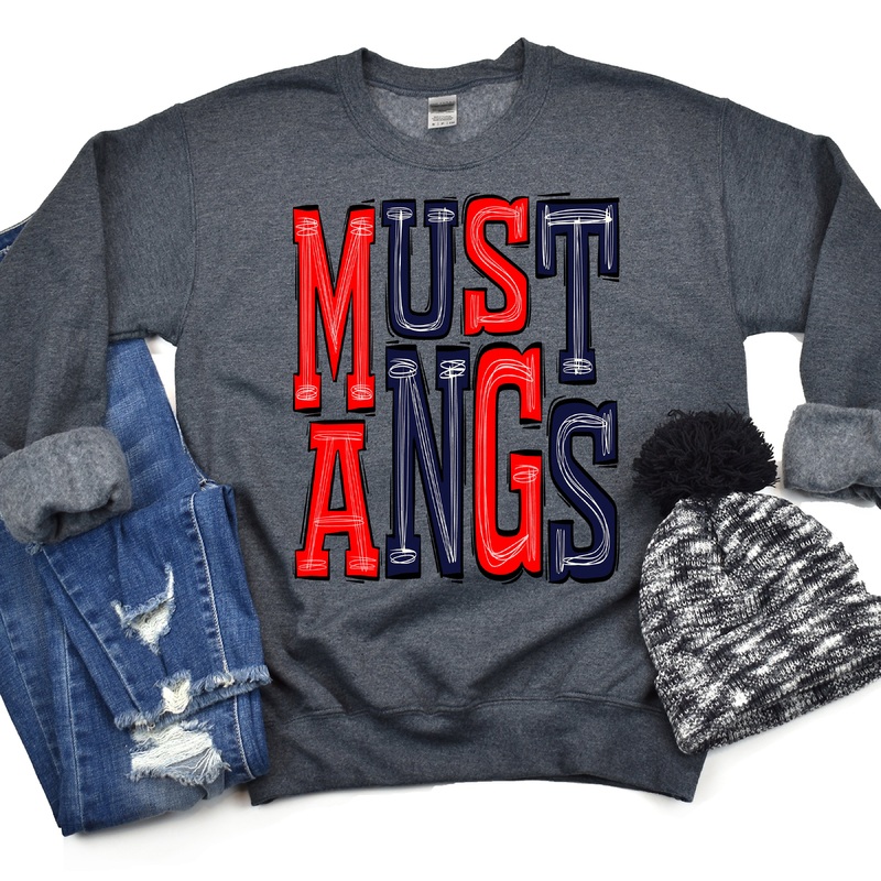 Mustangs-Red-Navy|Pocket|Infant|Toddler|Youth|Adult 11″|Adult 12″|Oversized Print 12″ Wide and Approximately 14″ Long – Also Includes Two Smaller Prints 5″ 6″ inches wide & 7″ Tall|Mockup