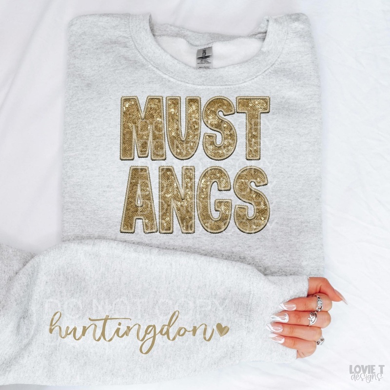 Mustangs Vegas Gold + Sleeve|Infant|Toddler|Youth 8.5|Adult 11″|Adult 12″