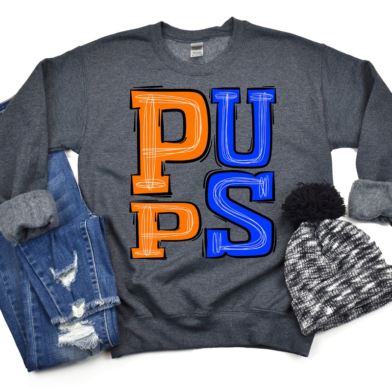 Pups-Orange-Blue|Pocket|Infant|Toddler|Youth|Adult 11″|Adult 12″|Oversized Print 12″ Wide and Approximately 14″ Long – Also Includes Two Smaller Prints 5″ 6″ inches wide & 7″ Tall|Mockup
